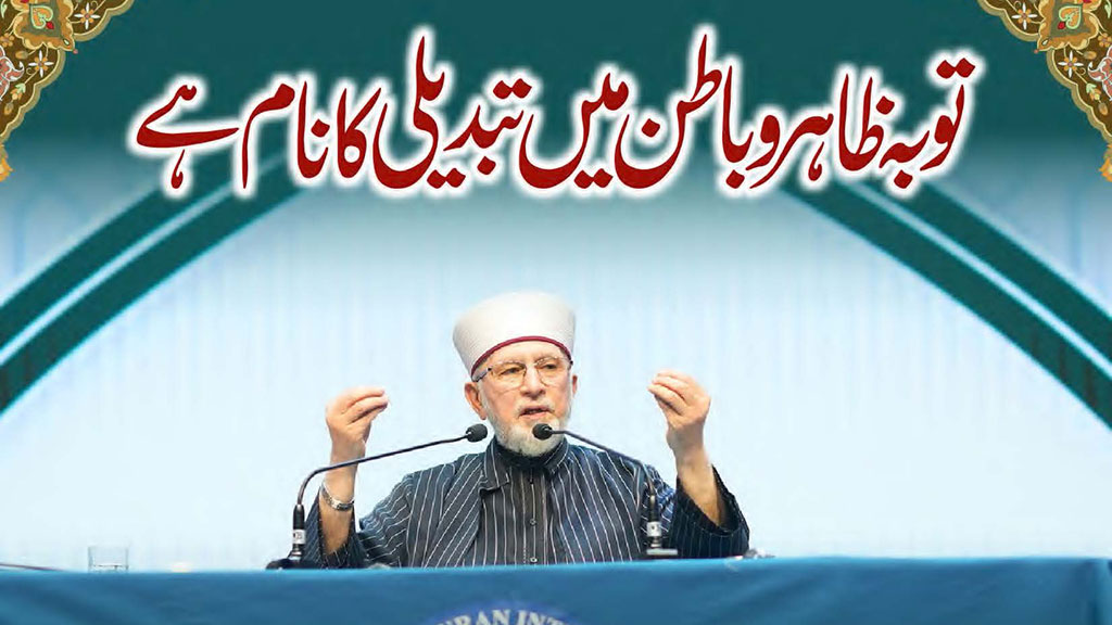 انسان کی زندگی میں اس نوعیت کی تبدیلی کہ جس سے اس کا ظاہر و باطن سنور جائے، اس کا نقطۂ آغاز توبہ ہے۔ توبہ غفلت کا احساس پیدا ہو جانے کا نام ہے۔۔۔ توبہ اِس بیداریٔ شعور کا نام ہے کہ بندے کو احساس ہو جائے کہ اس کی زندگی ہلاکت، نقصان اور خسارے میں ہے اور وہ اللہ کی نافرمانی اور معصیت کے سبب اپنی آخرت تباہ کر رہا ہے۔ اِس خسارے و نافرمانی کا ادراک و احساس پیدا ہو جانا اور اللہ سے دور ہونے اور اُس کی قربت سے محروم ہونے کا شعور بیدار ہو جانا ’’توبہ‘‘ ہے۔