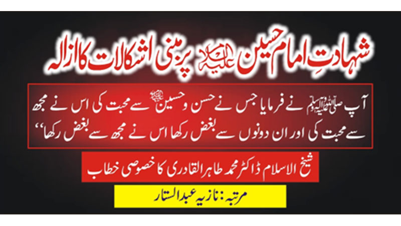 واقعہ کربلا کے بارے میں ایسے شک و شبہات پیدا کردیئے گئے ہیں جس سے پتہ چلتا ہے کہ سچائی دھندلاگئی ہے۔ لوگوں کے ذہن منتشر کیے جارہے ہیں تاکہ لوگ اہل بیت اطہارؓ کی مودت و محبت کے رشتے سے کٹتے چلے جائیں۔ اس طرح جو لوگ اہل بیت اطہار سے اپنا رشتہ کمزور کر بیٹھے ہیں وہ حضور علیہ السلام کی بارگاہ سے بھی کٹ جائیں۔ ان کی رگوں میں تعظیم رسول ﷺ میں بھی کمی واقع ہوجائے۔ ساری برکات جو امت کو ان کے واسطوں سے نصیب ہوتی ہے امت ان سے محروم ہوجائے۔