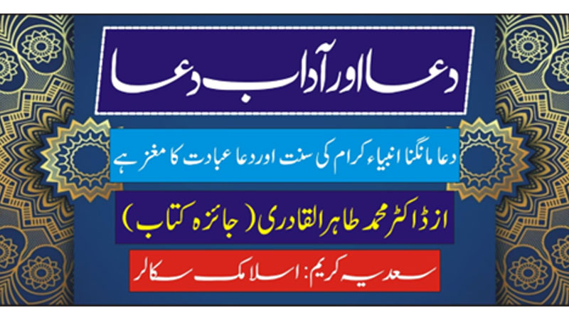 دعا اور آداب دعا شیخ الاسلام ڈاکٹر محمد طاہرالقادری کی ایک نادر اور معرکۃ الآراء تصنیف ہے یہ کتاب پچاسی اوراق پر مشتمل ہے جس میں پیش لفظ کے بعد پانچ بنیادی عنوانات کے تحت مختلف ذیلی عنوانات قائم کیے گئے ہیں اور دعا کے مفہوم، آداب، شرائط ار دعا مانگنے کے طریقہ کار کی مکمل وضاحت کی گئی ہے۔ کتاب کے آخر پر مآخذ و مراجع کی فہرست بھی موجود ہے۔ جس سے بوقت ضرورت متعلقہ آیت و حدیث یا اقتباس کی تصدیق کی جاسکتی ہے اور مزید معلومات حاصل کرنا ممکن ہوتا ہے۔اس کتاب کی وجہ تالیف بیان کرتے ہوئے ڈاکٹر صاحب لکھتے ہیں کہ