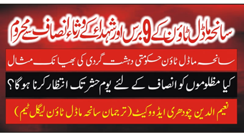 سانحہ ماڈل ٹاؤن پاکستان کی تاریخ کا ایک بھیانک کھیل ہے۔ جس میں طے شدہ منصوبہ کے تحت نواز، شہباز حکومت نے منہاج القرآن کے مرکزی سیکرٹریٹ اور شیخ الاسلام ڈاکٹر محمد طاہرالقادری کی رہائش گاہ پر ریاستی دہشت گردی کی جس کی پاکستان کی سیاسی وسماجی تاریخ میں مثال نہیں ملتی۔ مورخہ 17 جون 2023 کو شہداء سانحہ ماڈل ٹاؤن لاہور کی نویں برسی ہے۔ سانحہ ماڈل ٹاؤن کے متاثرین اور شہداءکے لواحقین 9 سال کا عرصہ گزرجانے کے باوجودبھی انصاف سے محروم ہیں۔ سانحہ ماڈل ٹاؤن استغاثہ کیس کاٹرائل انسداد دہشت گردی عدالت لاہور میں زیر سماعت ہے۔ سانحہ ماڈل ٹاؤن کی غیر جانبدار تفتیش کیلئے اس وقت کے چیف جسٹس آف پاکستان میاں ثاقب نثار کی سربراہی میں سپریم کورٹ کے لارجربنچ نے مورخہ 5 دسمبر 2018 کو سپریم کورٹ اسلام آباد میں سماعت کی اور سانحہ ماڈل ٹاؤن کیس کی ازسرنو تفتیش کیلئے نئی JIT بنانے کا فیصلہ ہوا اور مورخہ 3 جنوری 2019 کو پنجاب حکومت نے اے ڈی خواجہ کی سربراہی میں JIT نوٹیفکیشن جاری کردیا۔ جبکہ سپریم کورٹ کے فلور پر سانحہ ماڈل ٹاؤن کی تفتیش کے لئے تشکیل پانے والی نئی JIT نے مورخہ 14 جنوری 2019 سے لیکر 20 مارچ 2019 تک سانحہ ماڈل ٹاؤن کے تمام زخمی افراد، چشم دید گواہان اور شہداء کےلواحقین سے بیانات قلمبند کرلیے تھے اور سانحہ ماڈل ٹاؤن کے متاثرین کی طرف سے بھی نئی JIT کے روبرو پہلی دفعہ تمام زبانی ودستاویزی ثبوت شہادتوں کی شکل میں پیش کردیے گئے ہیں۔ اور اسی طرح نئی JIT نے سانحہ ماڈل ٹاؤن کے تمام ملزمان بشمول سابق وزیراعظم میاں نوازشریف، موجودہ وزیراعظم میاں شہباز شریف اورموجودہ وفاقی وزیرداخلہ رانا ثناءاللہ، ڈاکٹر توقیر شاہPSOٹوسابق وزیراعلیٰ پنجاب، سابق آئی جی مشتاق سکھیرا سے مختلف پہلوؤں پر تفتیش مکمل کرلی تاکہ معلوم ہو سکے کہ یہ وقوعہ کیوں ہوا ہے ؟ اس کے پیچھے کیا سازش کارفرماتھی ؟ اس وقوعہ کے پیچھے کو ن کون سے سازشی عناصر موجود ہیں؟ اور یہ سازش کہاں سے چلی ؟ اور کس طرح اس سازش پر عملدرآمد ہوا؟ تو فوری طورپر کچھ قوتیں متحرک ہوگئیں اور انہوں نے 22اپریل 2019کو لاہور ہائی کورٹ کے ذریعہ JIT کی تشکیل کے نوٹیفکیشن کو معطل کروالیااورنئی JIT کو سانحہ ماڈل ٹاؤن کی مزید تفتیش سے روک دیاگیاتاکہ JIT ان تمام ملزمان سابق وزیراعظم نواز شریف، موجودہ وزیراعظم شہبازشریف، موجودہ وزیرداخلہ رانا ثناءاللہ، سابق PSOٹو وزیراعلیٰ پنجاب ڈاکٹر توقیرشاہ ودیگران جنہوں نے اس سانحہ کی منصوبہ بندی کی تھی۔ انکو گنہگارٹھہراکر انسداددہشت گردی عدالت میں چالان پیش نہ کردے اور ان منصوبہ سازملزمان اور سانحہ ماڈل ٹاؤن میں ملوث افرادکے ٹرائل کا آغاز نہ ہوجائے۔ یہاں تک کہ ایڈووکیٹ جنرل آفس کو بھی اس کیس کی فیکسیشن اور بینچ کی تشکیل کا علم نہ ہو سکا۔ جب ایڈووکیٹ جنرل پنجاب کو معلوم ہوا تو وہ فوری طورپر عدالت میں پہنچ گئے اور فل بنچ کے سامنے ساری صورتحال رکھی تو ایڈووکیٹ جنرل پنجاب کو لاہور ہائی کورٹ نے توہین عدالت کا نوٹس جاری کردیاگیا۔