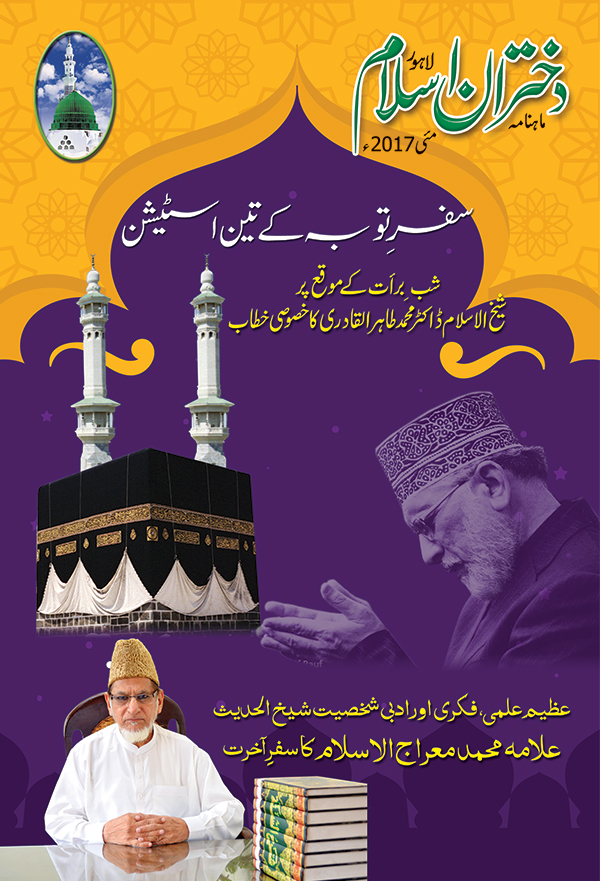 شبِ برأت کے موقع پر شیخ الاسلام ڈاکٹر محمد طاہرالقادری نے مورخہ 23 نومبر 1999ء کو گوالمنڈی لاہور میں عظیم الشان اجتماع سے خطاب کرتے ہوئے ’’سفرِ توبہ کے تین اسٹیشن‘‘ کے موضوع پر خصوصی خطاب فرمایا جس کی اہمیت کے پیش نظر اس کو ایڈٹ کرکے بالاقساط شائع کیا جارہا ہے جو قارئین مکمل سماعت کرنا چاہیں وہ سی ڈی نمبر07 سماعت فرمائیں۔ (منجانب: ادارہ دختران اسلام)