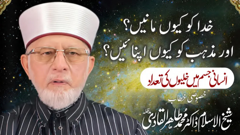 - انہوں نے کہا کہ انسان کا جسم 100 کھرب خلیوں (cells) کے ساتھ تشکیل پاتا ہے اور ہر سیل اپنے اندر ایک کائنات ہے۔ ایک سیل کے اندر 100 ارب atoms اور 4 کروڑ 20 لاکھ مالیکیولز ہوتے ہیں۔ ان سیلز پر تحقیق سے معلوم ہوگا کہ کوئی ذات ہے جس نے انہیں ڈیزائن کیا، بنایا اور پھر ترتیب سے ان کی جگہوں پر لگایا ہے۔ ... وہی خدا ہے۔ کائنات میں تمام اشیاء خلیات (cells) سے مل کر بنی ہیں۔ ایک خلیہ کا سائز اتنا ہوتا ہے کہ 10 لاکھ خلیات (cells) جمع کیے جائیں تو ان کا سائز ایسے بنتا ہے جیسے بال پوائنٹ کی نوک ہوتی ہے۔ انسانی جسم کے ہر خلیہ (cell) کے اندر ایک کائنات آباد ہے۔ خدا نے اس سیل کی ضرورت کی تمام اشیاء اس کے اندر پیدا کی ہیں۔ جیسا کہ آنکھ کے retina کے خلیات میں ایک ہزار سے اڑھائی ہزار تک پاور پلانٹس ہوتے ہیں اور وہ پاور پلانٹس جسم میں موجود شوگر سے چلتے ہیں۔ صرف یہی نہیں بلکہ آنکھ کے ایک سیل سے پورا انسان تشکیل پاسکتا ہے۔ ہمیں علم، تحقیق اور سائنس کی آنکھ کھول کر ان آفاقی حقیقتوں کو دیکھنے کی ضرورت ہے۔ اس سے ہمیں خدا کے وجود کا پتہ ملے گا-