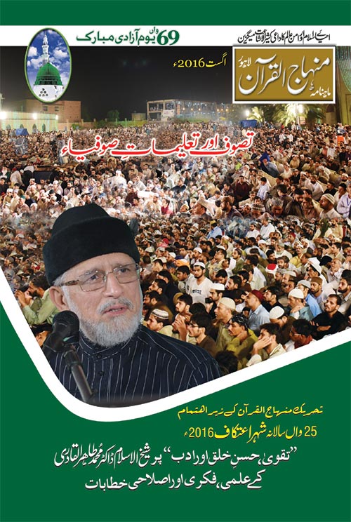 گذشتہ ماہ مارچ 2016ء میں شیخ الاسلام ڈاکٹر محمد طاہرالقادری آل انڈیا علماء و مشائخ بورڈ کی خصوصی دعوت پر عالمی صوفی کانفرنس میں خصوصی شرکت اور کلیدی خطاب کے لئے بھارت تشریف لے گئے۔ آپ نے کانفرنس میں دہشت گردی و انتہاء پسندی کے اسباب، اس ناسور کا حل اور صوفیاء کی تعلیمات کے حوالے سے علمی و فکری خطاب ارشاد فرمایا۔ اس خطاب کا پہلا حصہ مئی 2016ء کے شمارہ میں شائع ہوچکا ہے جس میں آپ نے دہشت گردی کے عوامل، ان کے تدارک اور لفظ ’’تصوف‘‘ اور ’’صوفی‘‘ کے مادہ ہائے اشتقاق اور معنوی تشبہ و صفاتی تتبع پر تفصیلی اظہار خیال فرمایا۔ اس علمی و فکری خطاب کا آخری حصہ نذرِ قارئین ہے: