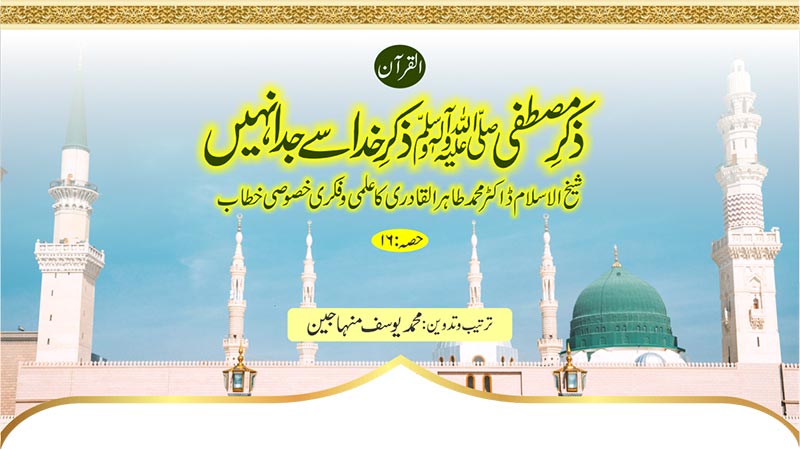 میں نے اس حدیث مبارکہ؛ اذا ذکرت ذکرت معی پر قرآن مجید کے ایک طالب علم کے طور پر ایک منفرد کام کیا ہے۔ میں نے قرآن مجید کا عمیق نظری سے مطالعہ کیا اور اللہ تعالیٰ کی توفیق سے قرآن مجید سے احکامِ دین، عقائد اور اعمال کے ان پہلوؤں کو تلاش کرکے جمع کیا ہے جن میں اللہ تعالیٰ نے اپنے ذکر اور حضور علیہ السلام کے ذکر کو جمع کر دیا ہے۔ یہ قرآن مجید کا اپنی نوعیت کا ایک منفرد اور خصوصی مطالعہ ہے۔ قرآن مجید کی یہ آیات اس امر کا اعلان ہیں کہ ان دونوں کو اب جدا نہیں کیا جا سکتا۔ اس حوالے سے غلط مؤقف رکھنے والے کیا اب ان آیات کو قرآن مجید سے نکال دیں گے؟