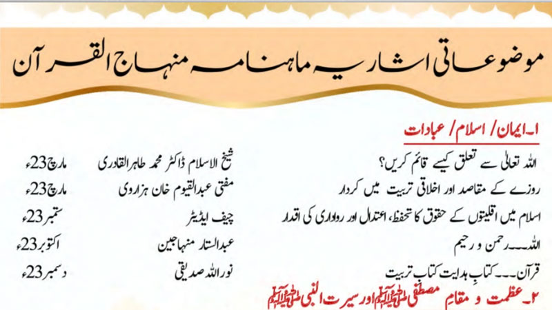 موضوعاتی اشاریہ ماہنامہ منہاج القرآن سال 2023ء - دسمبر23ء