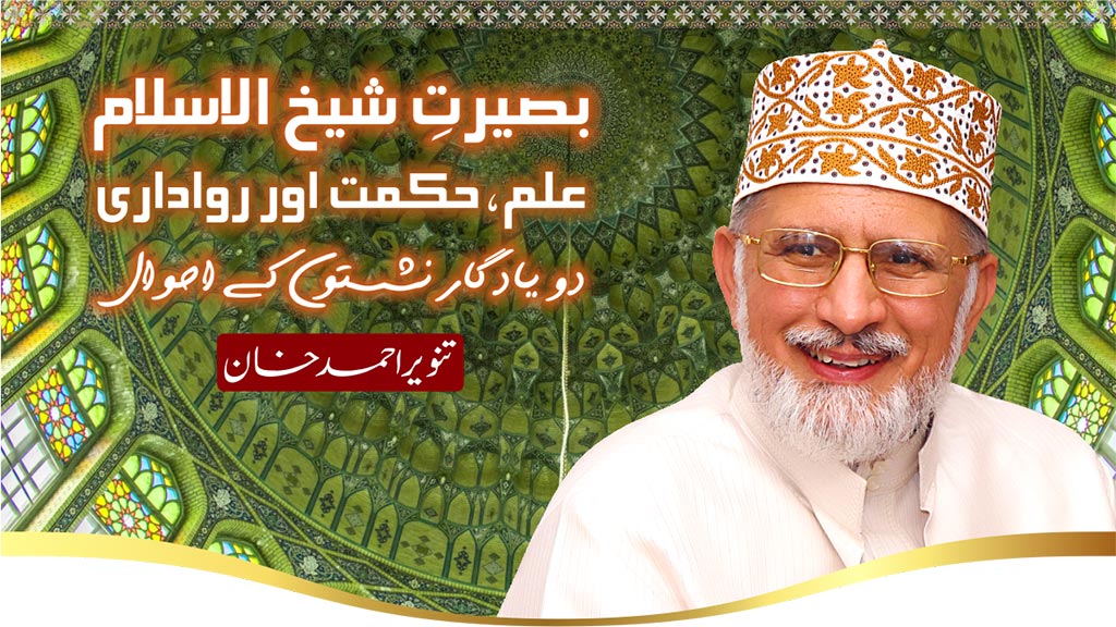 زیرِ نظر مضمون شیخ الاسلام کی 75 ویں سالگرہ کے پرمسرت موقع پر ان کی بے مثال علمی و فکری بصیرت کو خراجِ تحسین پیش کرنے کی ایک ادنیٰ سی کوشش ہے۔ یہ تحریر میری زندگی کی اُن دو یادداشتوں پر مشتمل ہے جنہوں نے نہ صرف میرے نظریات کو جلا بخشی بلکہ تحریکِ منہاج القرآن کے منہج اور شیخ الاسلام ڈاکٹر محمد طاہرالقادری کی عالمی بصیرت کو بھی پوری طرح آشکار کیا۔ یہ یادداشتیں محض گزرے ہوئے واقعات نہیں بلکہ اس حقیقت کا ثبوت ہیں کہ جب امت فکری انتشار اور گروہی عصبیت کی آگ میں جل رہی تھی، تب شیخ الاسلام ڈاکٹر محمد طاہر القادری نے امت کی کشتی کو انتہا پسندی کے بھنور سے نکال کر رواداری اور بقائے باہمی کے ساحل سے ہمکنار کر دیا تھا۔