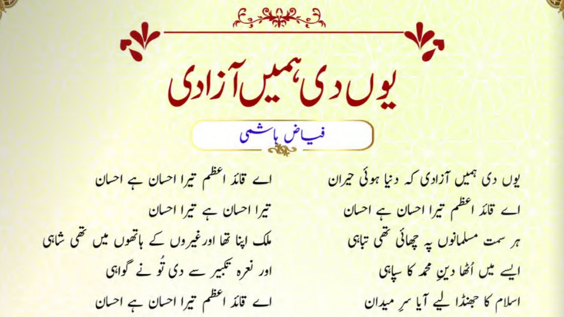 اے قائد اعظم تیرا احسان ہے احسان