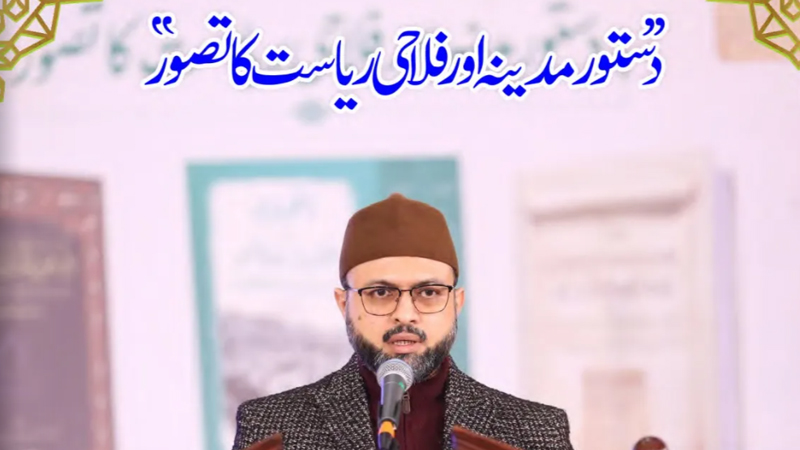 ایوان اقبال لاہور میں منہاج القرآن انٹرنیشنل کی سپریم کونسل کے چیئرمین ڈاکٹر حسن محی الدین قادری کی دو جلدوں اور 14 سو صفحات پر مشتمل تجزیاتی تحقیق”دستو مدینہ اور فلاحی ریاست کا تصور“ کی تقریب رونمائی سے خطاب کرتے ہوئے تحریک منہاج القرآن کے بانی و سرپرست شیخ الاسلام ڈاکٹر محمد طاہرالقادری نے فرمایا کہ دستور مدینہ تاریخ عالم کا پہلا فلاحی اور اُم الدساتیر ہے جس میں امورِ مملکت انجام دینے کے حوالے سے مکمل راہ نمائی مہیا کی گئی۔ میثاق مدینہ دستور مدینہ بنا، اسی دستور کی وجہ سے اسلامی تاریخ کی پہلی فلاحی مملکت قائم ہوئی۔