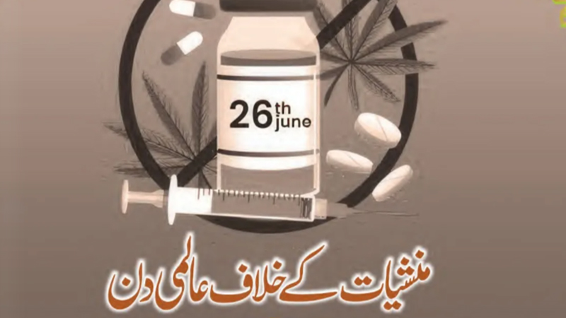 منشیات انسانی زندگی کے لیے زہر، قاتل ہے۔ اقوام متحدہ کی جانب سے ہر سال 26 جون کو منشیات کے خلاف عالمی دن منایا جاتا ہے جس میں منشیات کے استعمال اور اس کی غیر قانونی تجارت کا انسداد کرنے کا عہد ہوتا ہے۔
