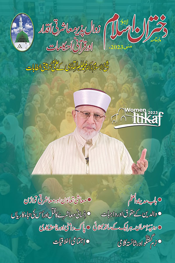 تحریک منہاج القرآن کے زیر اہتمام اور حضور شیخ الاسلام دامت برکاتہم العالیہ کے زیر سرپرستی حرمین شریفین کے بعد اسلامی دنیا کا سب سے بڑا اجتماعی اعتکاف جامع المنهاج ( بغداد ٹاؤن) ٹاؤن شپ لاہور میں منعقد ہوتا ہے۔ تزکیہ نفس، اصلاح احوال، تو بہ اور آنسووں کی بستی شہر اعتکاف ہمیشہ سےتحریک منہاج القرآن کی پہچان ہے۔ شہر اعتکاف میں شیخ الاسلام ڈاکٹر محمد طاہر القادری کے علمی و فکری اور تربیتی خطاب ہوئے۔ دنیا بھر سے تشنگان علم نے زوال پذیر معاشرتی اقدار اور قرآنی احکامات کے موضوع سے متعلق اپنی پیاس بجھائی اور درج ذیل موضوعات پر 10 روز اپنی تربیت کا سامان کیا۔