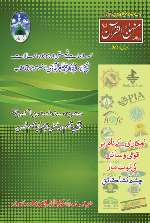 سرورق حمد باری تعالیٰ و نعت رسول مقبول صلی اللہ علیہ وآلہ وسلم مذہبی عصبیت سے اجتناب کی ضرورت القرآن: علامات فتن اور موجودہ حالات الفقہ: آپ کے دینی مسائل حضرت سیدنا صدیق اکبر رضی اللہ عنہ نجکاری کے نام پر قومی وسائل کی لوٹ مار بانگ اسرافیل ان کو زندہ کر سکتی نہیں شیخ الاسلام ڈاکٹر محمد طاہرالقادری کا دورہِ ایران شیخ الاسلام کی 63 ویں سالگرہ کے موقع پر دنیا بھر میں پروقار تقریبات کا انعقاد شیخ الاسلام کی جملہ ممبران، ڈونرز و وابستگانِ منہاج القرآن کیلئے اَہم ہدایات بیک ٹائٹل