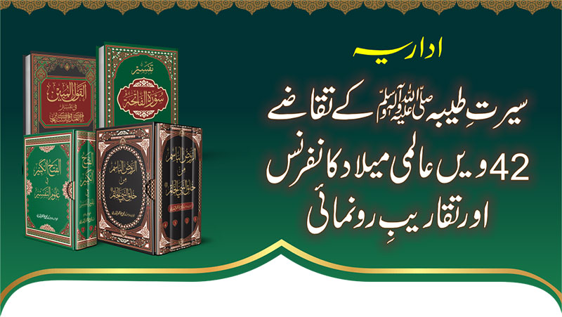 منہاج القرآن کے زیر اہتمام منعقدہ 42 ویں عالمی میلاد کانفرنس 1500ویں جشنِ ولادت کے سلسلے میں منعقد ہورہی ہے۔ اس کانفرنس میں پاکستان سمیت یورپ، امریکہ، برطانیہ، مشرق وسطیٰ سے بھی وفود شرکت کریں گے۔ سب سے بڑھ کر یہ کہ شیخ الاسلام ڈاکٹر محمد طاہرالقادری کا اُمت کے نام پیغام ہے کہ حضور نبی اکرم ﷺ کے ساتھ حقیقی عقیدت و محبت اور مؤدت یہ ہے کہ آپ ﷺ کی حیاتِ طیبہ کو اپنے شب و روز، اُمور و معاملات کا حصہ بنایاجائے اور اُمت محمدیہ ﷺ کا ہر فرد اپنے قول و فعل میں مصطفوی سیرت کا آئینہ دار بن جائے۔ شیخ الاسلام نے یہ تعلیم دی ہے کہ آپ ﷺ آسانیاں پیدا فرمانے والے تھے، دوسروں کا بوجھ ہلکا کرتے، دوسروں کے آرام و سکون کا خیال رکھتے، کمزور کی دستگیری اور اعانت فرماتے۔ آپ ﷺ انتہا پسندانہ طرزِ عمل سے گریز فرماتے، برائی کا جواب ہمیشہ اچھائی سے دیتے، آپ ﷺ کے شب و روز کا بیشتر حصہ امن اور محبت کی تعلیم دیتے بسر ہوتا۔ آپ ﷺ صلح و مفاہمت کے علمبردار ہیں، رواداری، محبت و اخوت، رحمت و شفقت، عفو و درگزر، صبر و استقامت، احترام و تکریم، نرم دلی، نرم خوئی، نرم جوئی، شرافت، سخاوت، خیر خواہی، حلم و بردباری آپ ﷺ کی پاک سیرت کے نمایاں اوصاف ہیں۔ آپ ﷺ انسانوں میں سب سے زیادہ سخی، مہمان نواز اور صبر و استقامت کا کامل نمونہ ہیں۔